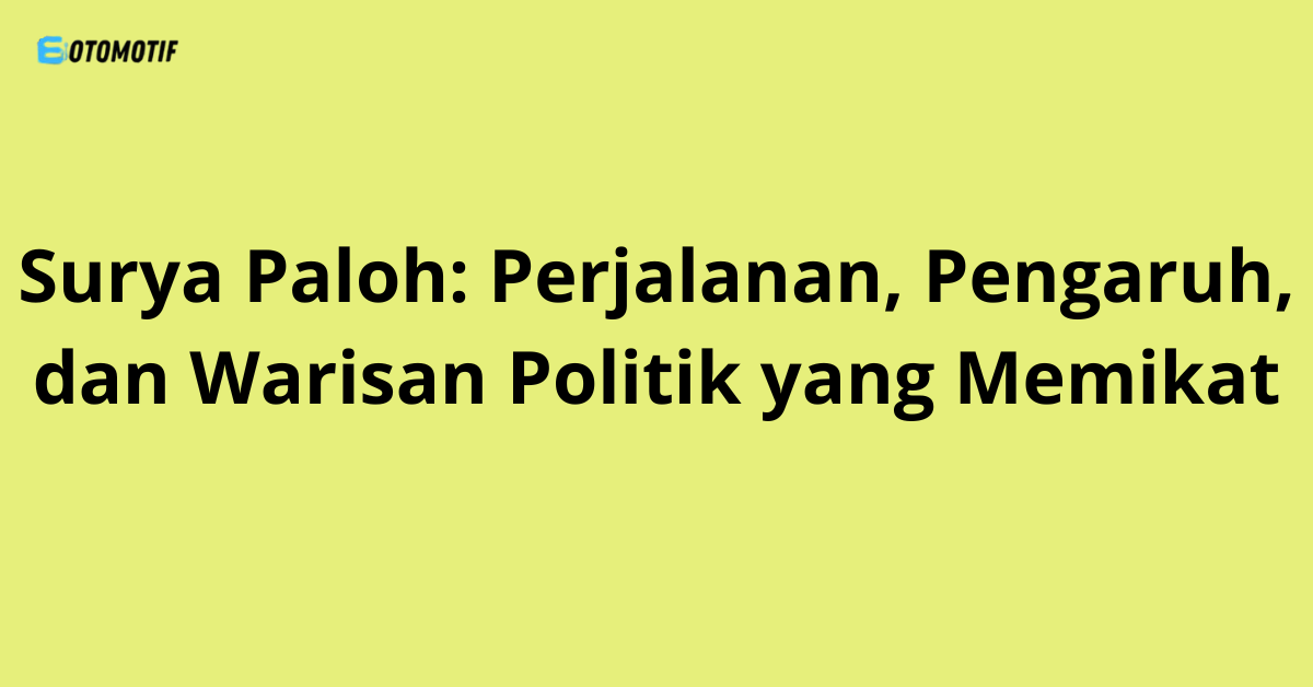Surya Paloh adalah salah satu tokoh politik paling berpengaruh di Indonesia. Ia dikenal sebagai pendiri Partai NasDem sekaligus pengusaha media ternama. Nama Surya Paloh tak pernah lepas dari dunia politik nasional karena gagasan-gagasannya yang kuat tentang perubahan dan restorasi bangsa.
